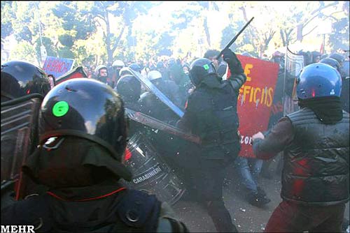دانشجویانی که در رم تظاهرات کرده بودند با پلیس درگیر شدند که این