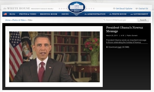 ساعتی پیش پیام ضبط شدۀ ویدیوئی باراک اوباما به مناسبت نوروز 90 بر روی وب‌سایت کاخ سفید قرار گرفت.