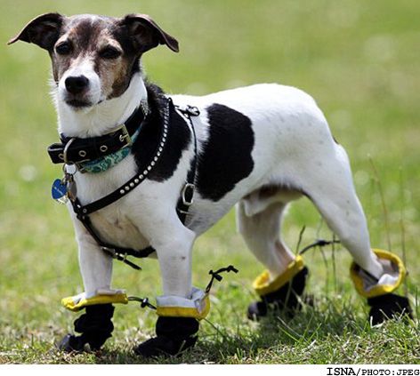 ایسنا: صاحب يك سگ اعلام كرد كه اين حيوان به دليل حساسيت شديد به چمن از كفش‌هاي مخصوص استفاده مي‌كند.