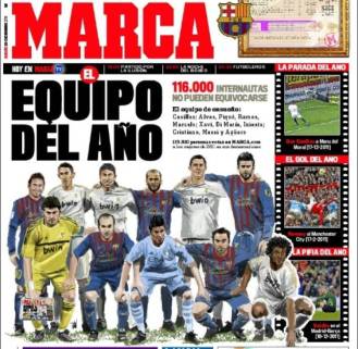 عصرایران ورزشی- روزنامه مارکا تیم منتخب سال 2011 خود را براساس رای خوانندگانش اعلام کرد. در این رای گیری که 116 هزار نفر در آن شرکت کردند و دست به انتخاب های جالبی زدند.