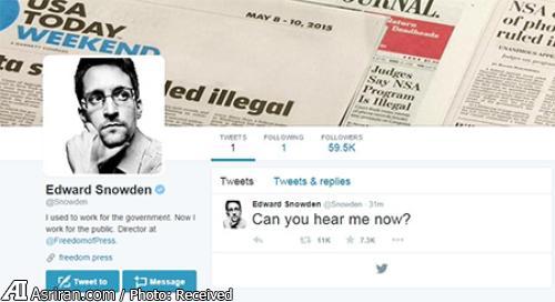 عصر ایران اسنودن در نخستین پیام خود در صفحه توییترش نوشت:" حالا صدای مرا می شنوید؟"