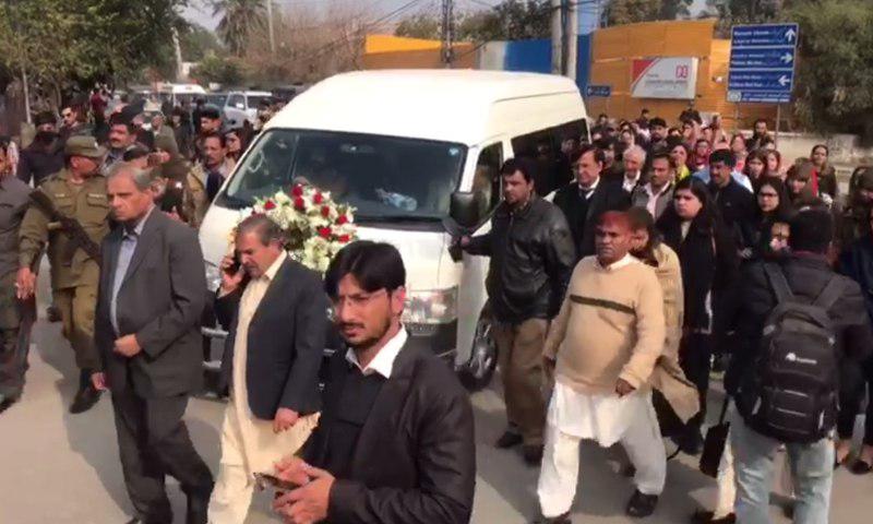 به گزارش ایرنا، پیکر جهانگیر با حضور جمعی از اعضای کانون وکلا و حقوقدانان پاکستان و جمعی از مسئولان دولت محلی ایالت پنجاب در شهر لاهور پاکستان تشییع و در قبرستان این شهر به خاک سپرده شد.