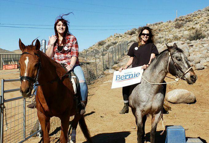 حامیان سندرز در ایالت "نوادا" سوار بر اسب و در حال تبلیغ خانه به خانه برای نامزد انتخاباتی شان