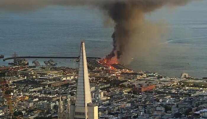 وقوع آتش سوزی مهیب در یکی از اسکله های شهر سانفرانسیسکو منجر به تخریب بخش عمده ای از آن شد.