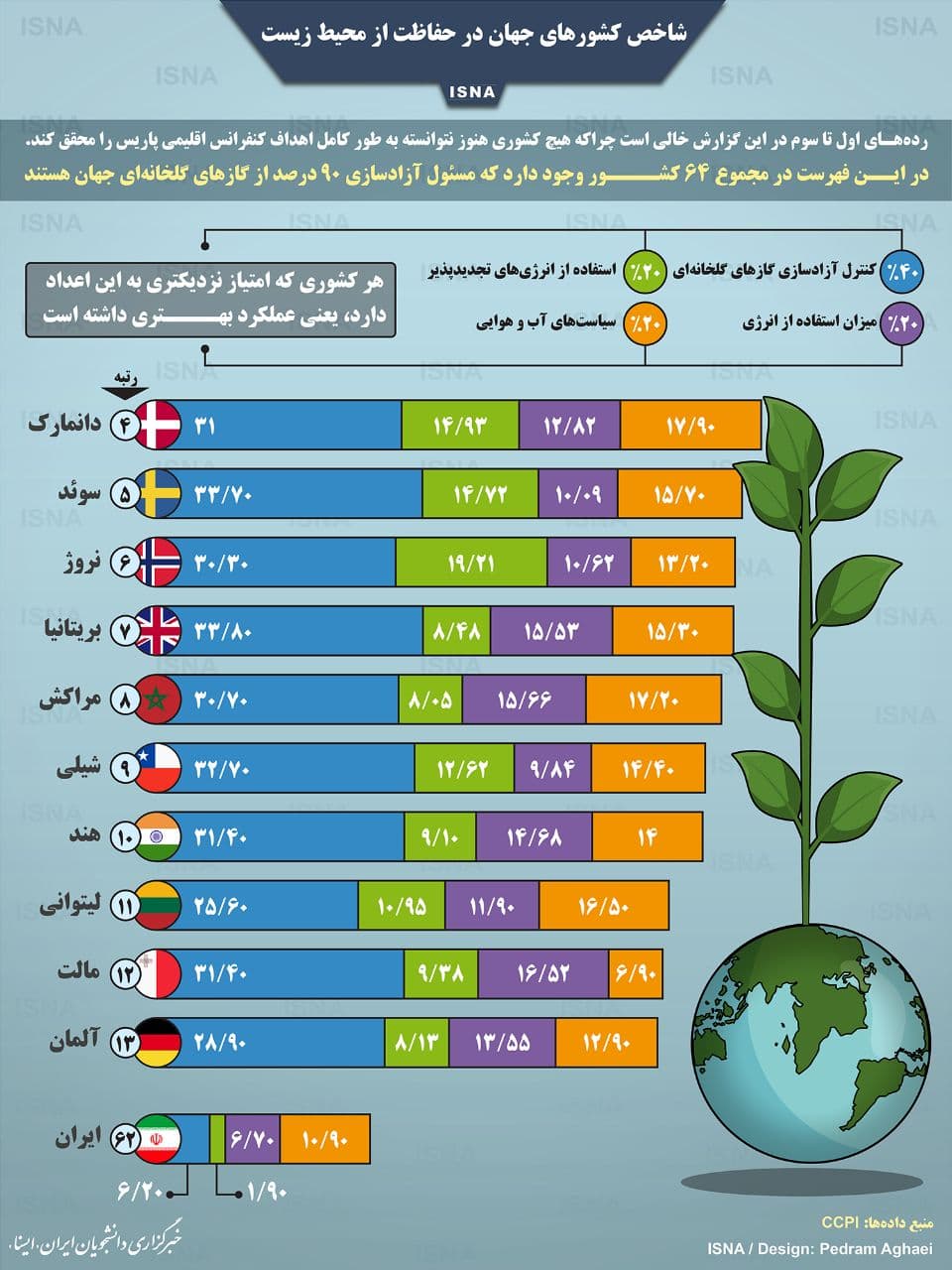 شاخص کشورهای جهان در حفاظت از محیط زیست (اینفوگرافیک)