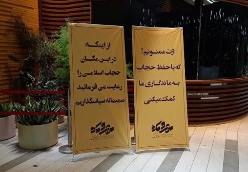 عصر ایران؛ مهرداد خدیر- چنان که در تصویر می‌بینید مجتمع گردش‌گری «مهر و ماه» در 6 کیلومتری جادۀ قم که بر سرحجاب (‌پوشش زنان مراجعه‌‌کننده و نه کادر کارکنان خودشان) پلمب شده بود -تا نماد و نمودی از شیوۀ جدید کنترل رسمی پوشش زنان باشد- پس از بازگشایی این بنر را نصب کرده است: «‌ازت ممنونم! که با حفظ حجاب به ماندگاری ما کمک می‌کنی».